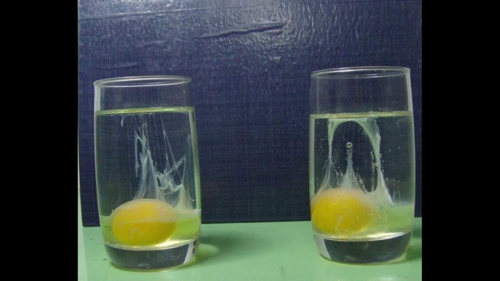 3. Rompimiento del huevo: Rompe el huevo en un vaso con agua. El vaso debe ser transparente para que puedas observar bien lo que sucede.